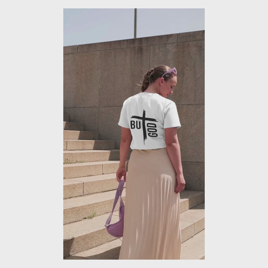 BUT GOD Christian T Shirt with Cross | 100% Cotton Faith Based Shirt | Vinyl Lettering | Sizes S–5XL