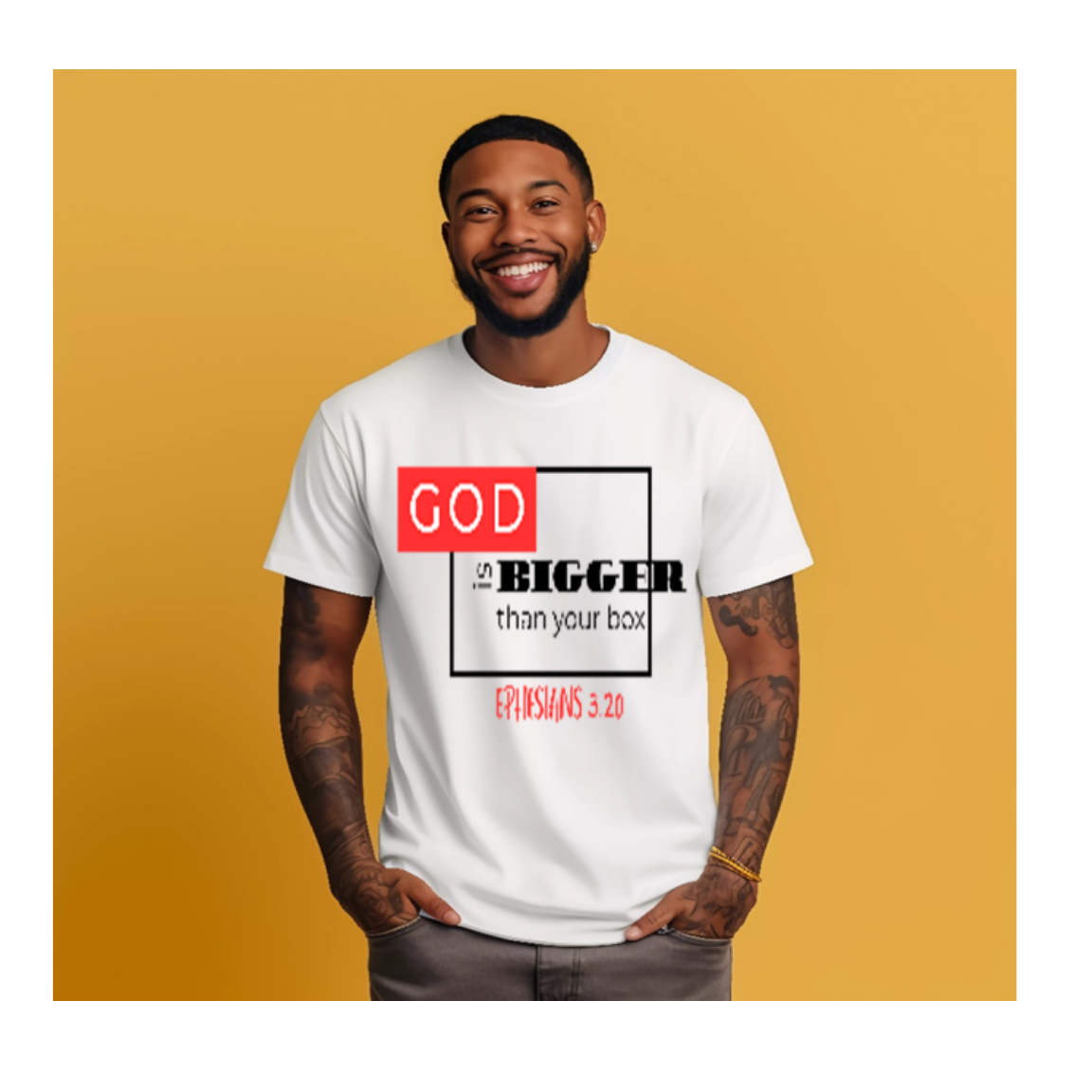 Step into bold faith with our “God Is Bigger Than Your Box” T‑shirt — a powerful reminder that God’s plans exceed every limit, label, and boundary placed on your life. Inspired by Ephesians 3:20, this design speaks to the God who does exceedingly, abundantly above all we can ask or think.